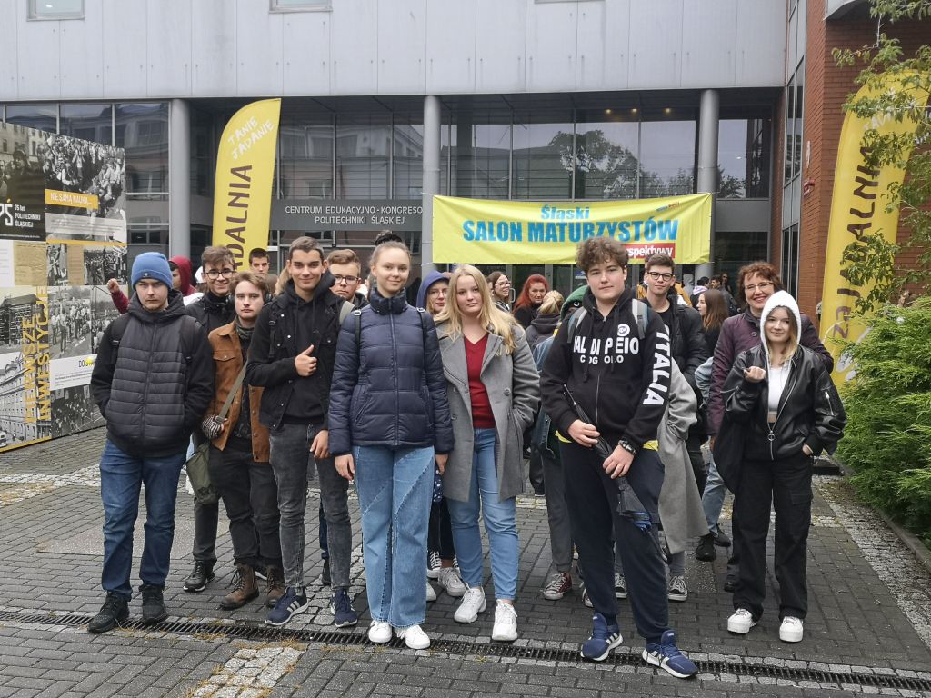W dniu 19 września 2022 r. uczniowie klasy 4e wybrali się na wycieczkę do Centrum Edukacyjno – Kongresowego Politechniki Śląskiej w Gliwicach. Odbywały się tam targi edukacyjne podczas których uzyskaliśmy informacje na temat zbliżającej się matury, jak również zapoznaliśmy się z ofertami uczelni, na których będziemy mogli kontynuować naukę. Poznaliśmy wymogi rekrutacji na różne kierunki studiów. Stoiska promocyjne uniwersytetów prezentowały ulotki, zachęcając do podjęcia nauki właśnie na ich uczelni. Przedstawiciele szkół wyższych omawiali program studiów oraz wymieniali zawody, w których można podjąć pracę po ich ukończeniu. Zorganizowane były pokazy urządzeń, robotów, dzięki którym można było zapoznać się z zasadami ich działania. Podczas targów uzyskaliśmy odpowiedzi na nurtujące nas pytania, a także zdobyliśmy wiedzę na temat interesujących nas kierunków studiów. Wróciliśmy pełni optymizmu, przekonani o szerokich możliwościach wyboru przyszłego zawodu.